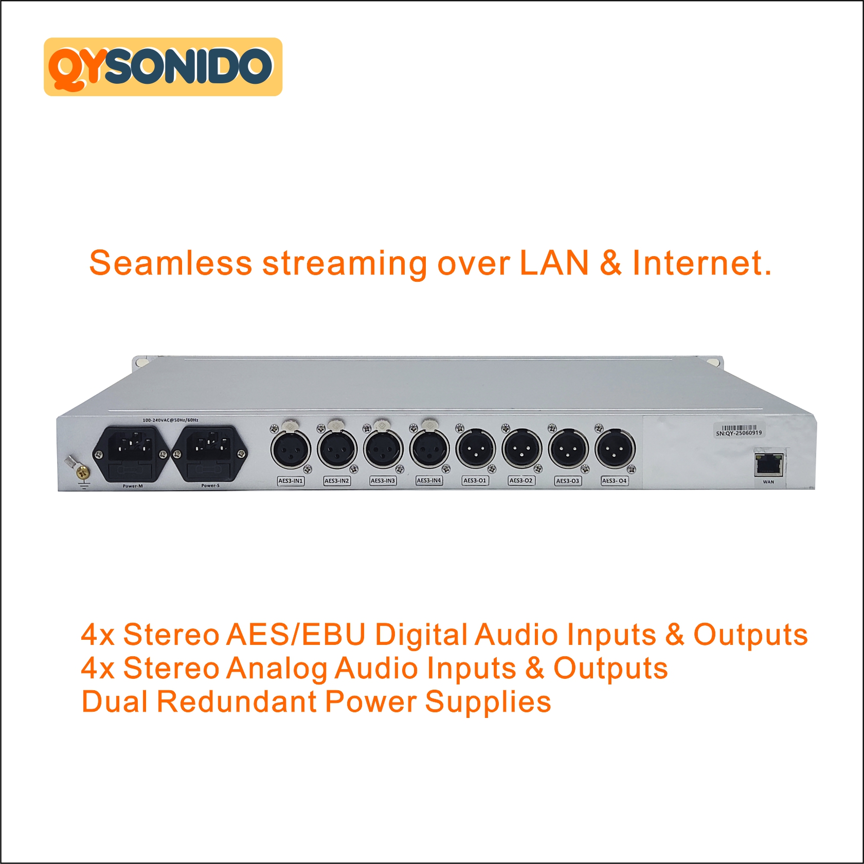 $1,499.00Professional Multi-Channel Audio Encoder & Streamer (3/4/8 Channels) – QY-ENC SeriesHigh-reliability broadcast-grade device with 3/4/8 independent stereo channels. Supports AES3, analog, Dante inputs + AOIP expansion (Dante, AES67, Ravenna, ST2110-30 compatible).Stream multiple channels simultaneously — each with custom formats (MP3, MP2, AAC-LC, AAC-HE, OPUS) and bitrates (16–256 kbps) for optimal network adaptability.Key Advantages:Flexible independent encoding per channel