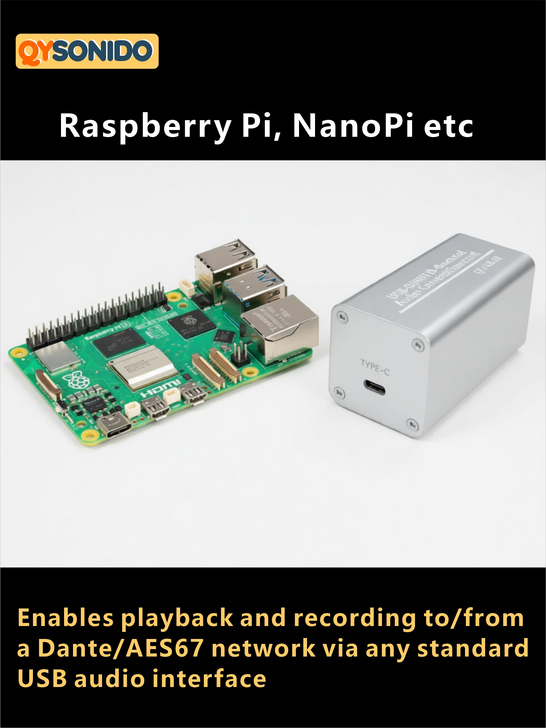 This portable USB sound card is designed to solve the problem of modern computers (especially ultrabooks) lacking a wired network port. Simply plug it into a USB port—no drivers required—and instantly integrate your Windows, Mac, or Linux computer into a professional Dante/AES67 audio network.